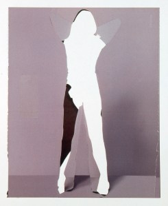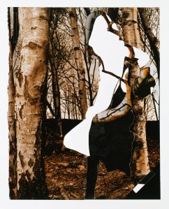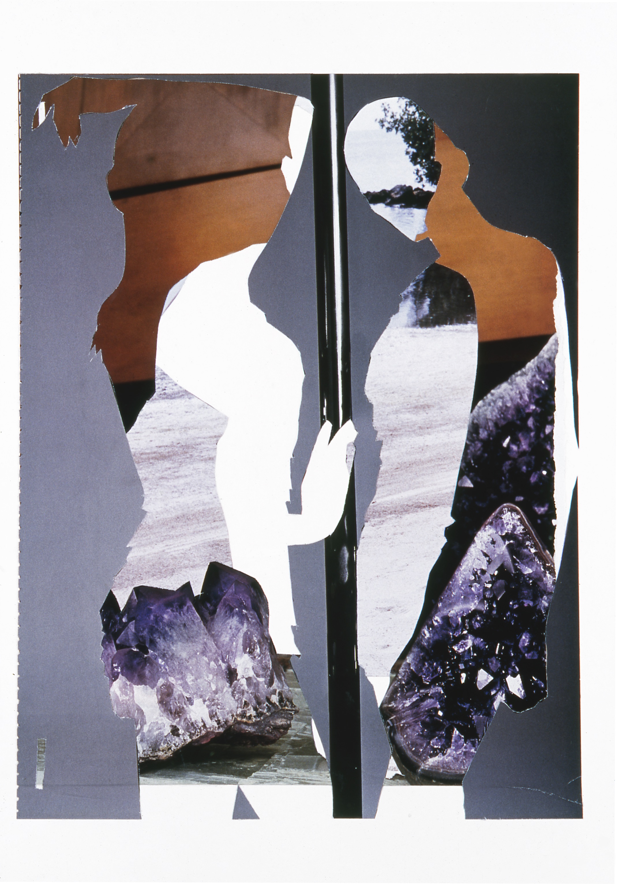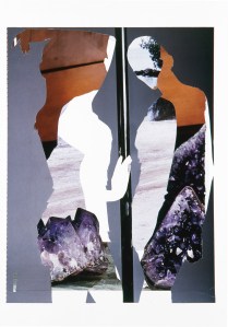 In the context of Take Me To The River, Fairhurst’s series of emptied-out collages range from two to ten superimposed pages from glossy fashion magazines, and all adhere to a simple rule of “all evidence of body and text removed”. The works evoke a poetics of the absurd in the midst of a global culture of the image that fetishizes surface over depth, and envy and desire over integrity. The immediate experience of these collages, which maintain the formal language of advertising albeit without any actual content, is a Pavlovian confusion of triggered desire. However, as ever with much of Fairhurst’s work, beneath the simple logic of reduction and removal there lies a powerful sense of emptiness and the void, giving these works a particular beauty, and a deep sense of melancholy that is completely out of synch with the superficial longing manufactured by consumer culture.