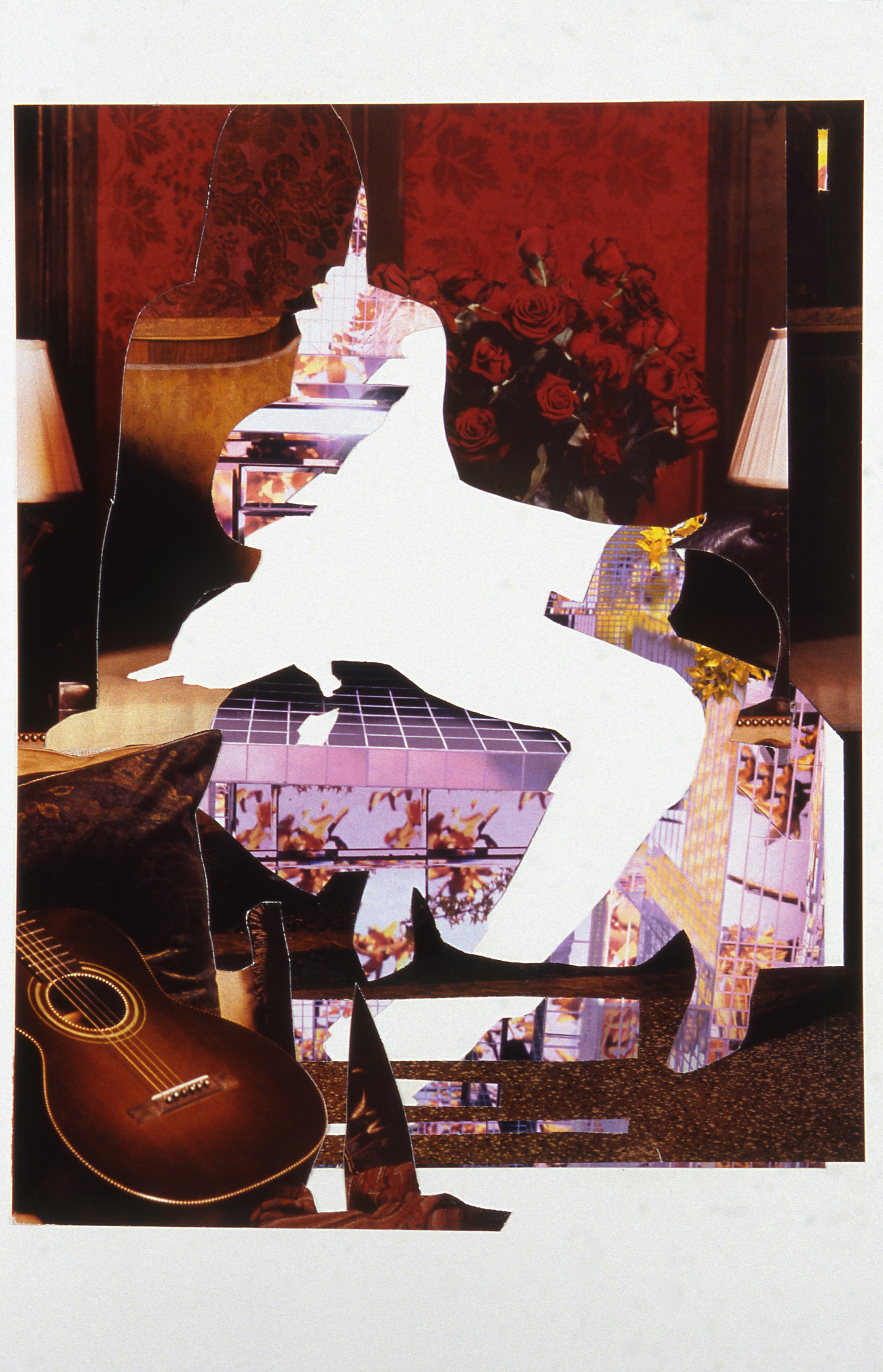 Angus Fairhurst was one of the most influential members of the group of artists associated with London’s Goldsmiths College in the late 1980s, who became known as the Young British Artists, setting the tone for contemporary art in the UK over the next two decades. He rose to prominence alongside close friends such as Damien Hirst and Sarah Lucas, with whom he often collaborated, and was particularly known for the sharp wit and wry sense of humour which infused his work. Unlike many of his contemporaries, Fairhurst’s practice eluded easy categorisation, encompassing sculpture, painting, performance, photography, video, music, printmaking, drawing and collage. These elements merged into an idiosyncratic and subtle formal vocabulary, their multiple layers of meaning seeming to develop out of an underlying sense of melancholy and the absurdity of everyday life. The artist found a source for his complex multilayered collages in advertising, with its constantly repeated paradigms of female beauty and glamour, and its glossy depictions of luxury. By freeing these images from their representative function, for example by removing all evidence of body and text, Fairhurst revealed his fascination with the aesthetics of surfaces, and the formal apparatus underpinning the mass production of desire in advertising. Much of his work centred in this way on repetition, evoking the existential spirit of Samuel Beckett or Bruce Nauman. He often explored the manner in which loops and superimposition serve as metaphors for the emptiness of day-to-day existence and the mundane rituals of life.