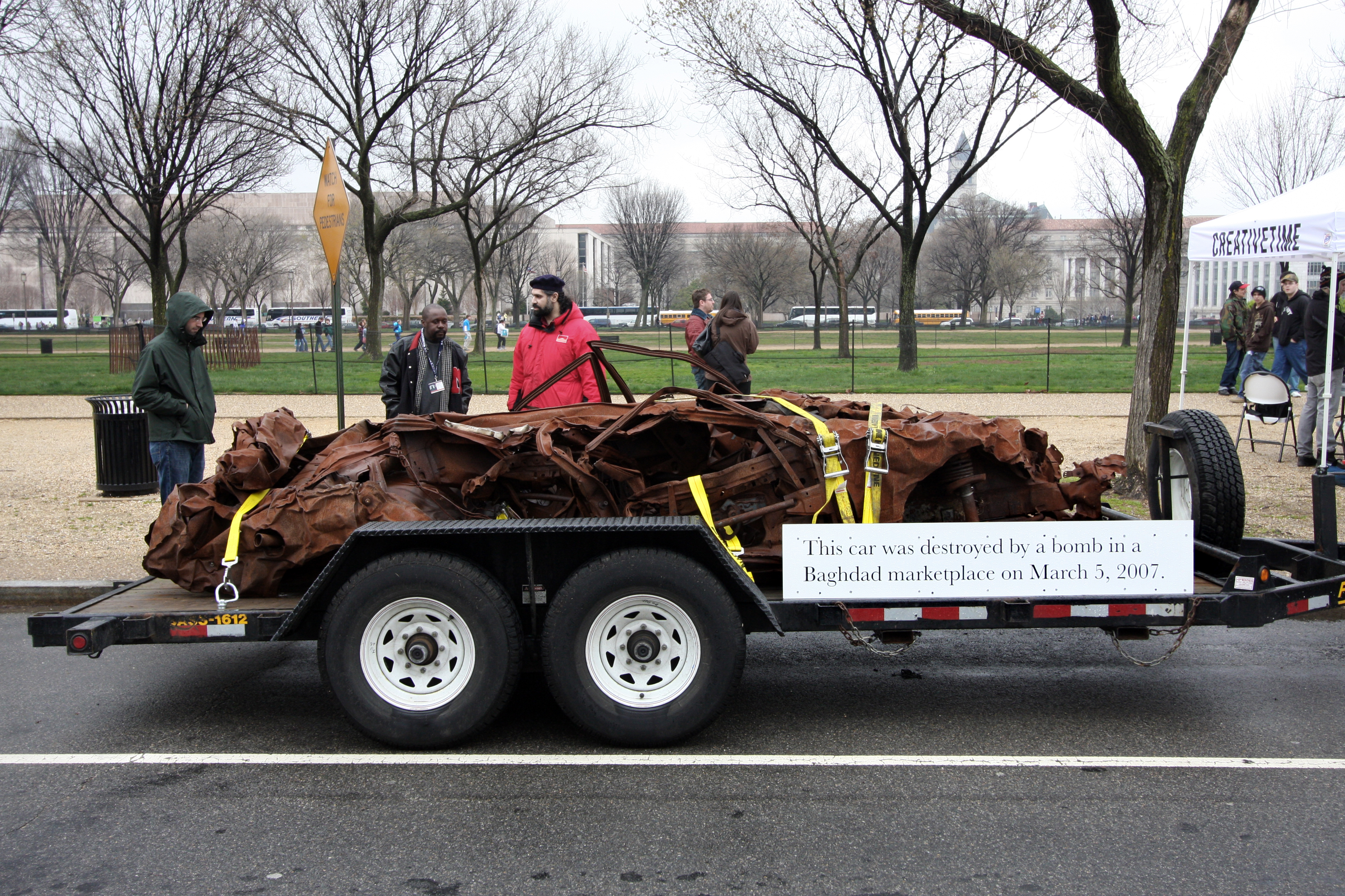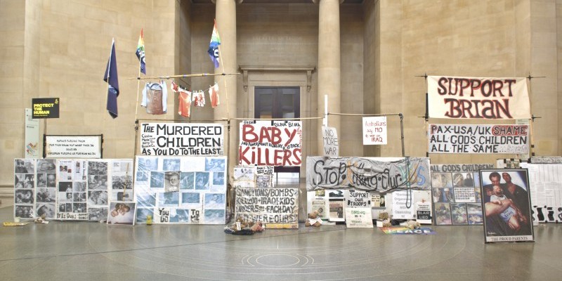 In recent times [c. 2010] there has been a string of high profile, so-called ‘political’ artworks supported by mainstream arts institutions, and featured heavily in the media. Anti-war protest art such as Mark Wallinger’s State Britain (2007), an exact replica of Brian Haw’s one-man peace camp re-located from Parliament Square to Tate Britain, or Jeremy Deller’s It Is What It Is (2009), which took the wreckage of a car destroyed by a bomb in Baghdad on a tour of art museums across the USA, have been widely feted by the cultural establishment – both artists mentioned have been awarded the Turner Prize, for example. But what is it that public-funded institutions find so appealing about art that purports to be political, especially as such works would seem to directly criticise the policies of the very state that funds them? Or perhaps the question should be turned around to ask, what does it mean for the political efficacy of the artworks to be so whole-heartedly embraced by the cultural institutions of the state?